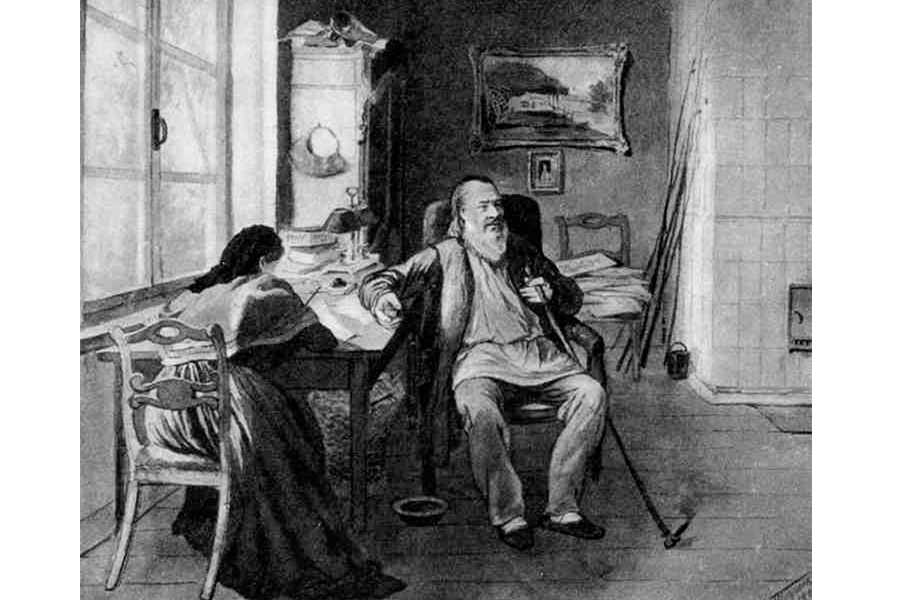 С 1869 года живописец творил в Петербурге, где создал работу «Александр Сергеевич Пушкин в селе Михайловском», посвященную Александру Пушкину. Чувствуя, что вдохновение покидает его, мастер уехал из страны.