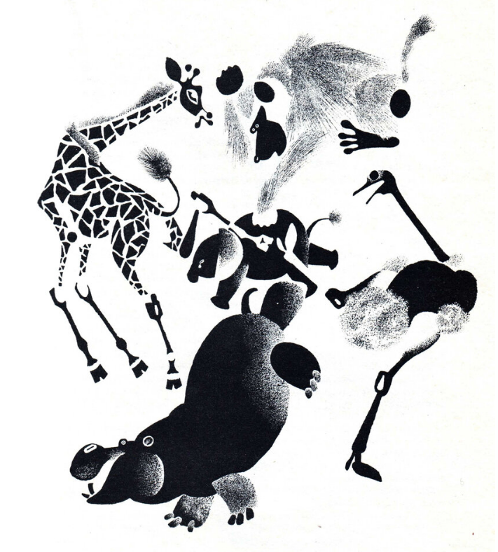 Плакатная, плоскостная техника, сочетание серого и черного, т.е. мрачных для детских глаз цветов, были не только новыми для них, они вызывали совсем не те ассоциации, которые, видимо, представлялись художнику. Дети видели фигуры животных как бы разрезанными на части.