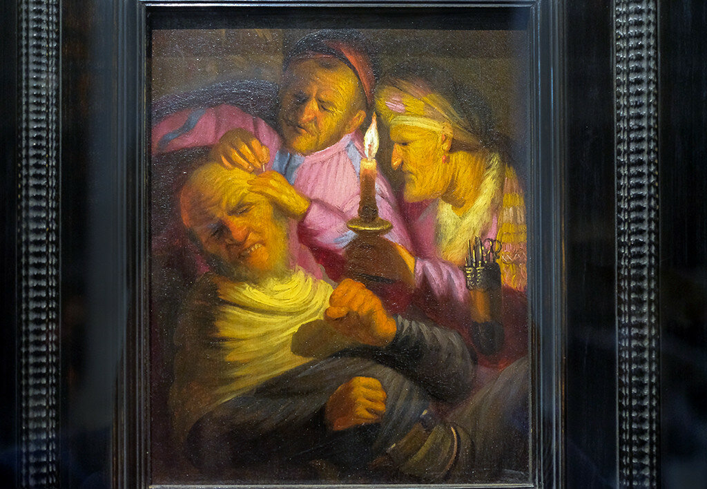 Рембрандт Харменс ван Рейн. Пациент, упавший в обморок (Аллегория обоняния), 1624-1625 (?). Лейденская коллекция, США