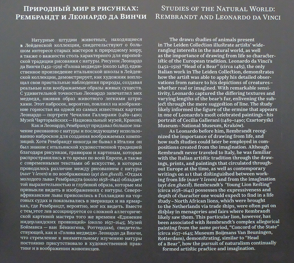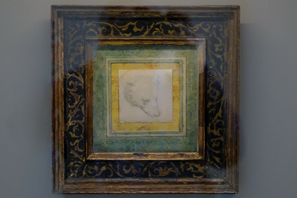 В паре с этим рисунком демонстрируется маленький рисунок Леонардо да Винчи, по-видимому, потому что им очень сильно гордится владелец коллекции. А кураторы говорят, что хотя Леонардо да Винчи и не является голландским живописцем, в данном контексте два представленных на выставке рисунка объединяет зоологическая тематика. Считается, что с этого рисунка, изображающего медведя, Леонардо в своё время написал горностая в картине «Дама с горностаем» (1496).