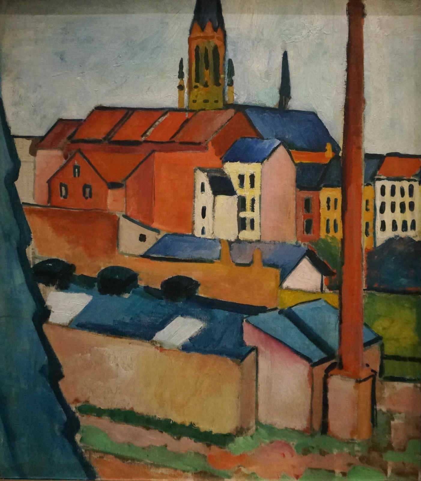 И действительно, здесь, в ателье на четвертом этаже, все располагало к работе. Это просторная комната с четырьмя большими окнами. Недалеко от дома расположены несколько церквей и мостов. Прямо из окна ателье – вид на объекты, вдохновлявшие Маке на новые сюжеты: собственный сад и двор, огород соседа-зеленщика, прилегающие к дому улицы и мост Мариенбрюке.