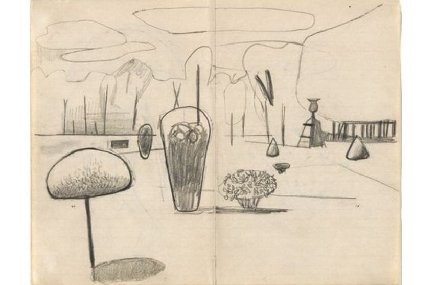 Ellsworth Kelly — pencil drawing of the Tuileries Garden, Paris, 1949