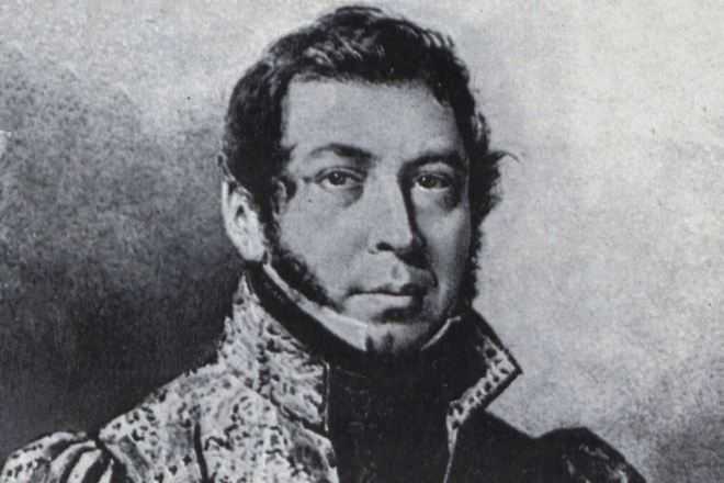 Выходец из семьи крепостных крестьян, будущий академик Императорской Академии художеств Василий Сазонов родился в Гомеле в 1789 году. Граф Николай Румянцев (министр иностранных дел России в 1808-1814 годах) заметил талант мальчика и определил его за свой счет в Императорскую академию художеств. Там Сазонов учился под руководством небезызвестного художника Григория Угрюмова. За выдающиеся успехи в учебе граф Румянцев дал своему крепостному вольную.