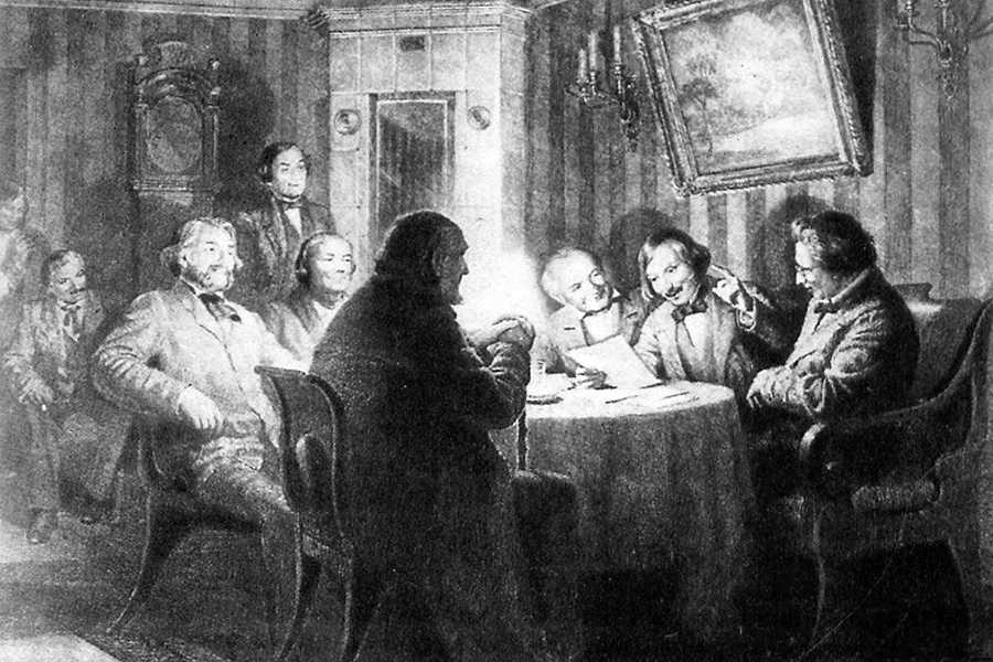 Как раз во время своих первых литературных опытов Григорович знакомится с известным крестьянским поэтом Некрасовым. В это время поэт издавал множество сборников, которые пользовались успехом. Именно в одном из таких изданий появилось произведение, которое вышло из-под пера сразу трех писателей: Некрасова, Достоевского и Григоровича. Повесть получила название «Как опасно предаваться честолюбивым снам». В этом издании было напечатано и другое произведение Григоровича – «Штука полотна».