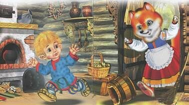 Справил Жихарка все дела, обед сварил, стол накрыл, стал ложки раскладывать, а по лестнице – топ-топ-топ – лиса идёт.
