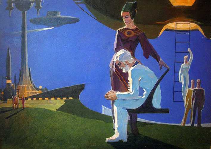 Несмотря на живой интерес к событиям, происходящим в Балакове, художник все больше уделяет внимания научно-фантастической тематике. Именно в этой области полностью раскрылся его талант. Картины, посвященные будущему, написаны в стиле символизма. Для них характерны: простота композиции, строгая графичность изображения, яркие цвета, каждый из которых символизирует определенное понятие. Зеленый — жизнь, голубой — нежность, красный — борьбу, преодоление препятствий.