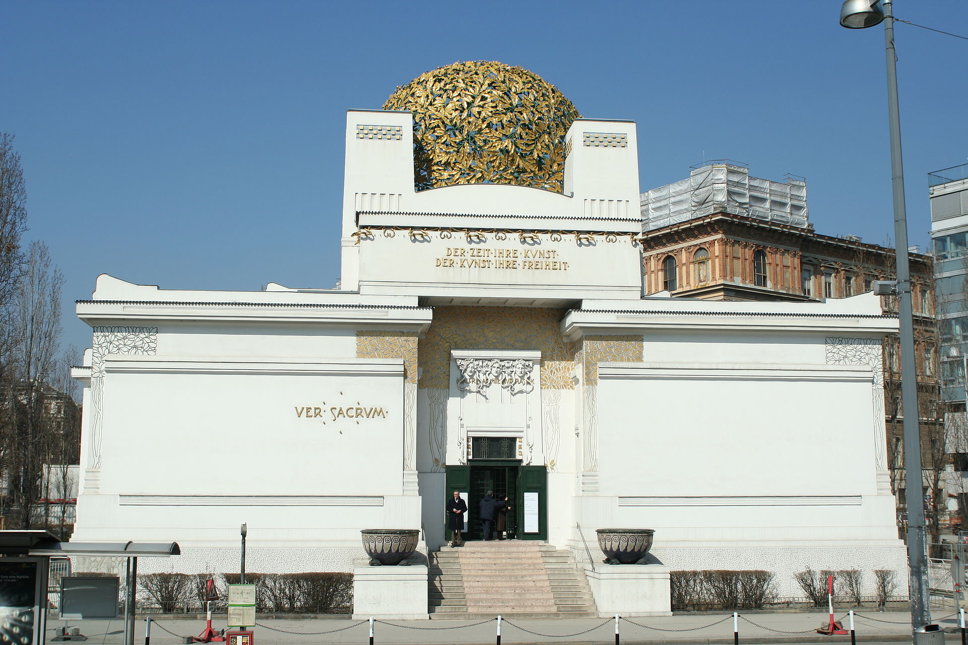 Член «Колонии художников Mathildenhöhe » Йозеф Мария Ольбрих — австрийский архитектор, который был одним из предшественников движения модерн . В частности, он спроектировал выставочный зал «Сецессион» в Вене в 1897 году. Термин «сецессион» происходит от латинского secessio plebis (римские граждане отказывались от государственных дел, если считали правление сомнительным). А девиз Сецессиона был: «В то время его искусство, искусство его свободы». Таким образом, модерн — это больше, чем художественное направление, он материально представляет идеалы художников. На входе в выставочный зал слева надпись Ver sacrum , «священный источник», символизирует обновление искусства и дает название журнальному органу движения.