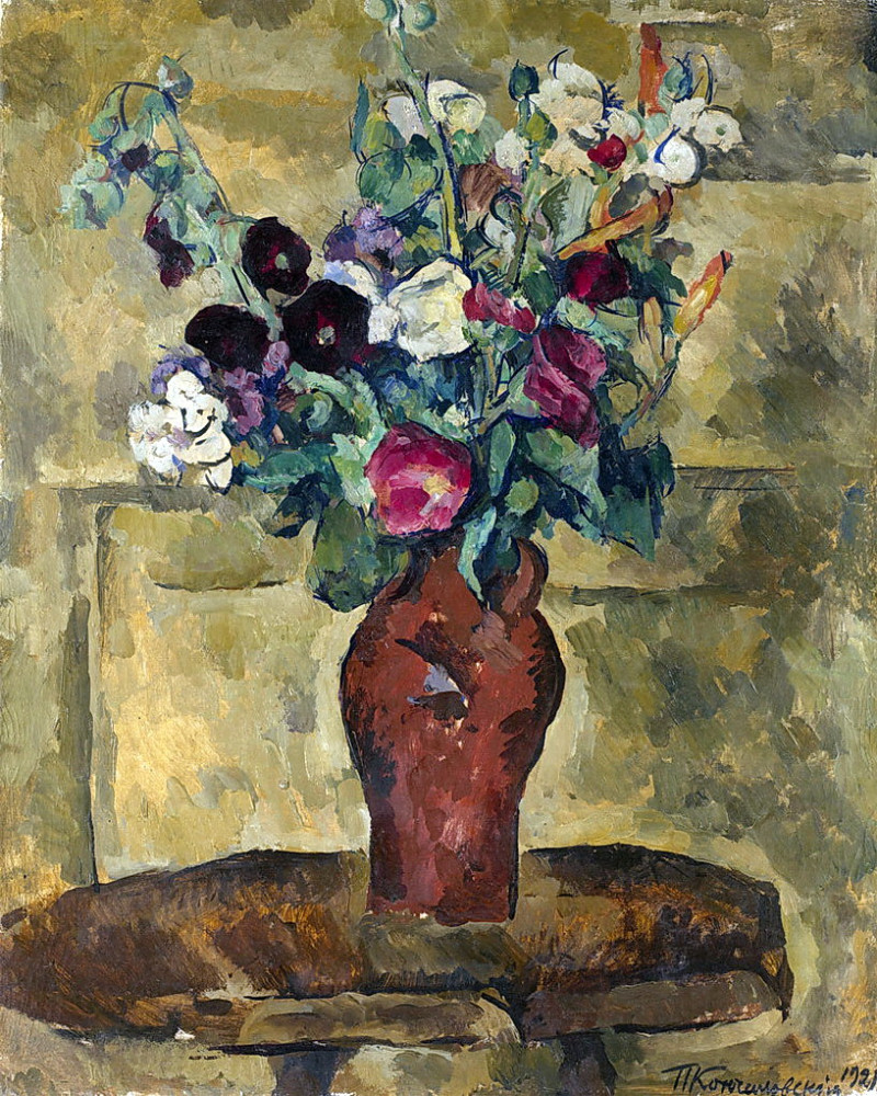 Особое место в живописи Кончаловского всегда занимали натюрморты, особенно цветочные. Художник говорил, что пишет их по причинам, сходным с теми, по которым пианисты играют гаммы – это трудное и необходимое упражнение.
