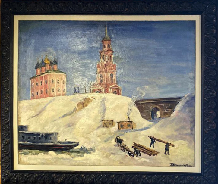 Критики относят картину к реализму, но узнаваемое использование красок для передачи настроения приближает работу Петра Кончаловского к творчеству постимпрессионистов. Картина «Пристань в Рязани» была написана в 1931 году.