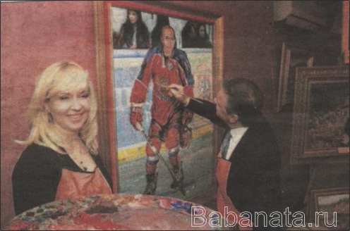 — Татьяна, среди фотографий, которые вы мне показали, есть особо любопытная: президент Международной федерации хоккея Рене Фазель как бы дописывает портрет президента Владимира Путина, которого вы изобразили в хоккейной форме, с клюшкой и на коньках.