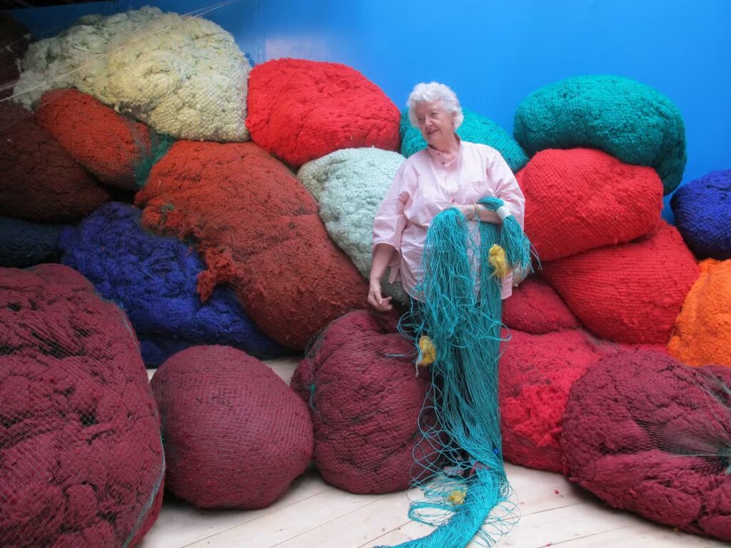 С 1950-х годов художница непрерывно работала с текстилем и волокном, или «эластичными материалами», как она их называет, превращая их как в небольшие плетения, так и в монументальные инсталляции. Художница желает, чтобы её работа разжигала в нас желание прикоснуться к её творению. Вот, как ещё комментирует свою гибкую колонну сама художница: