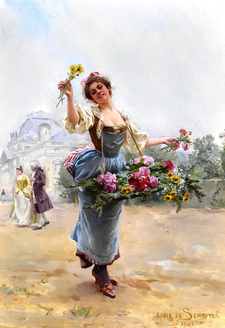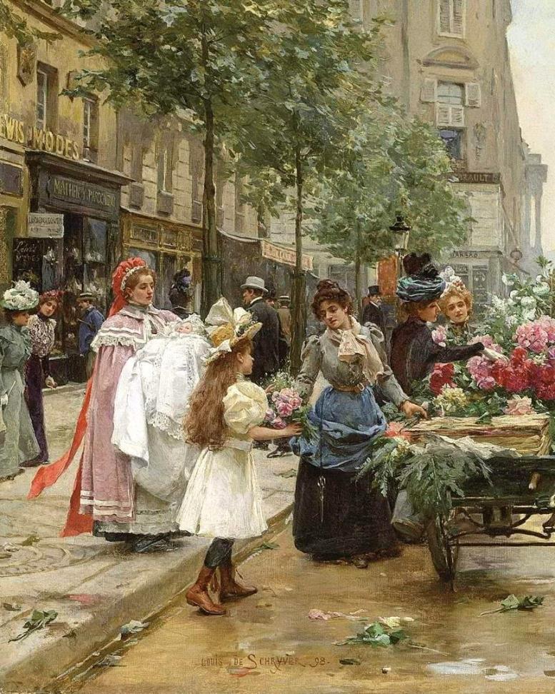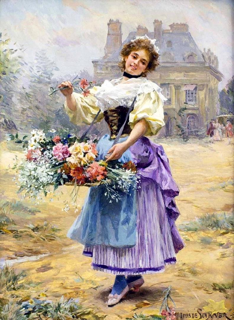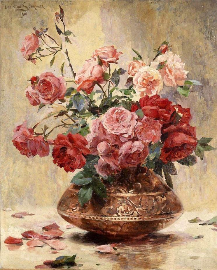 Artist Louis Marie de Schryver was born in Paris in October 1862, the son of a well-known and renowned journalist. He had a passion for painting from boyhood, and his works «Daisies and Chrysanthemums,» «Violets and Spring Flowers,» and «Violets and Spring Flowers» were presented at the Paris Salon in 1876, when he was just 13 years old. The young artist Louis Marie de Schryver was welcomed to his world-famous drawing school by the renowned Philip Rousseau. And it was remarkable — the children at the school were nearly twice the age of Louis Marie de Schryver.But Louis Marie de Schryver was not a long-term student at the famed master’s school; in 1879, at the age of 17, the young artist displayed his works at the Paris Salon and was given a bronze medal for one of his pieces.