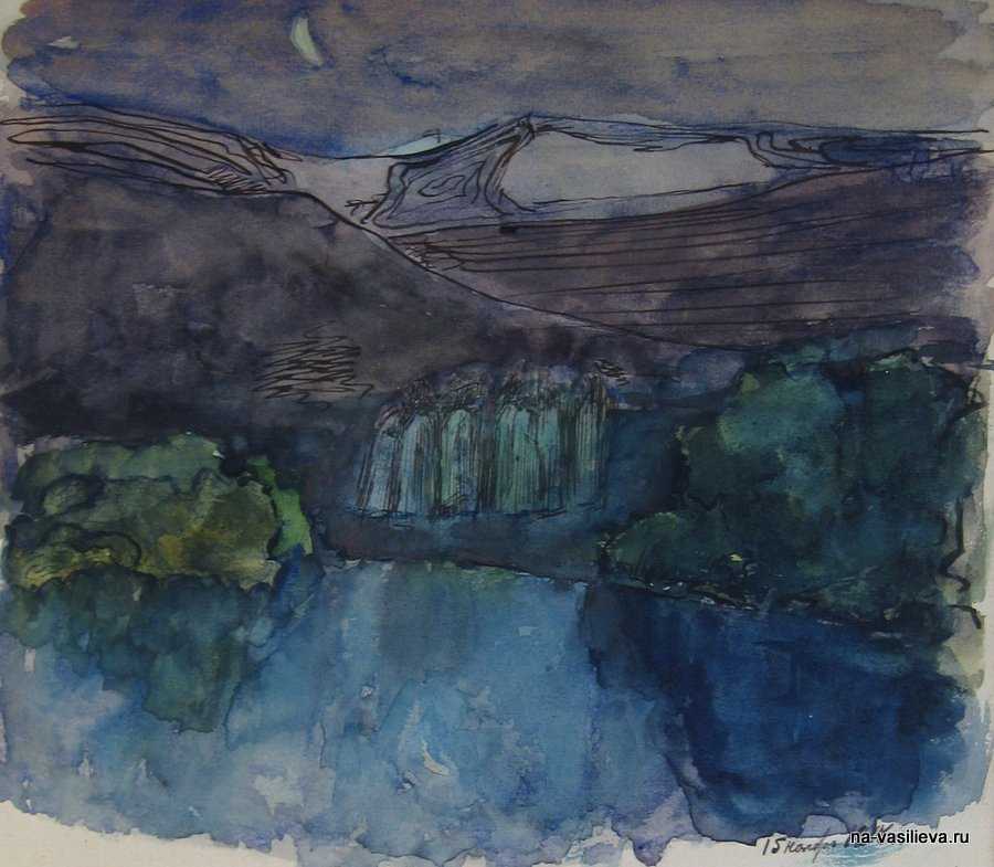 Открываем выставку акварелью «Ночной пейзаж» Е. Потехина «Ночной пейзаж», 1906