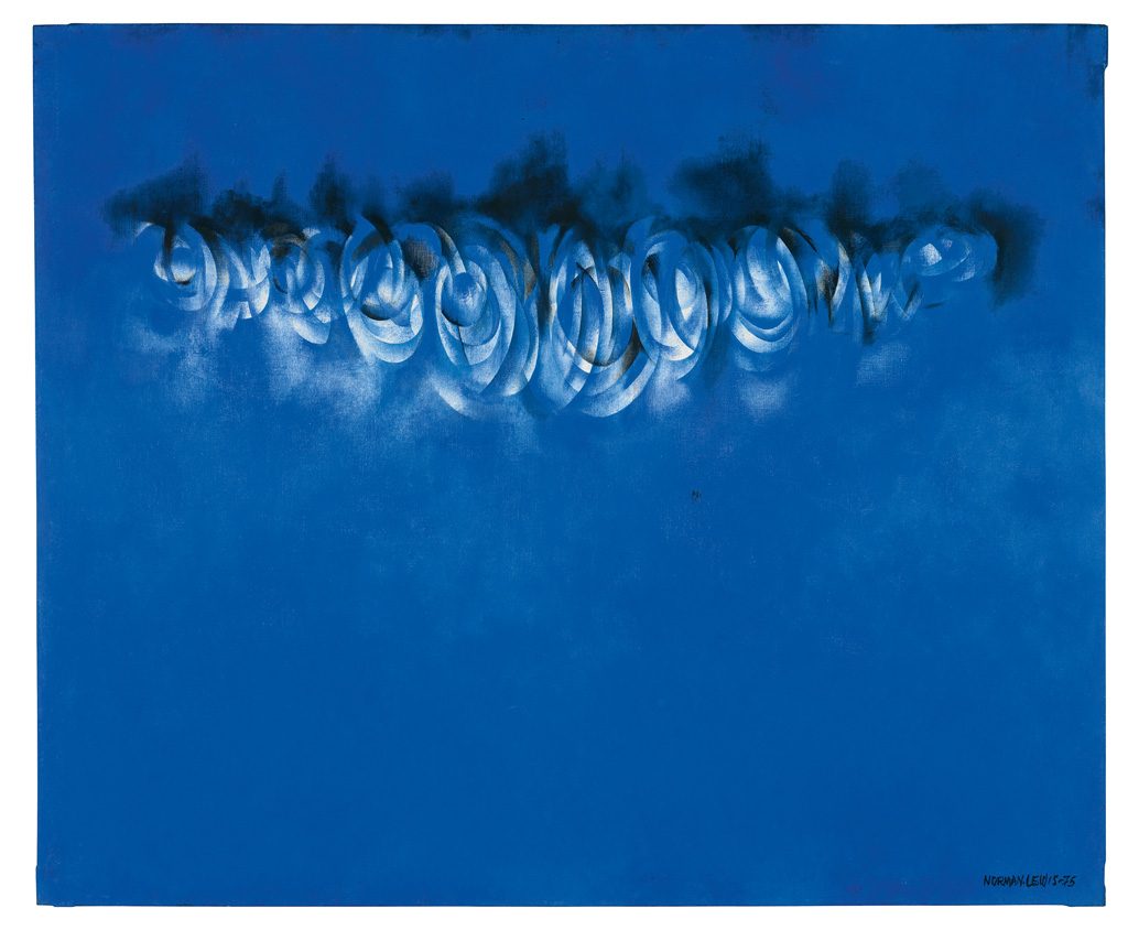 Block Island, oil on canvas, 1975, a radiant blue composition of curvilinear forms, was the first work on canvas from Norman Lewis’s Seachange series to come to auction, in 2016. Each piece in the series—the last major body of work by Lewis—is identifiable by undulating shapes surrounded by deep hues, drawing abstraction from the rhythms of nature. The paintings largely date from 1975-77, though the artist began making Seachange paintings as early as 1968, and continued to explore it throughout the 1970s, until his death in 1979.