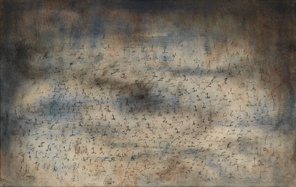 Birds in Flight, oil and metallic paint on canvas, 1953. Sold October 6, 2016 for $149,000.