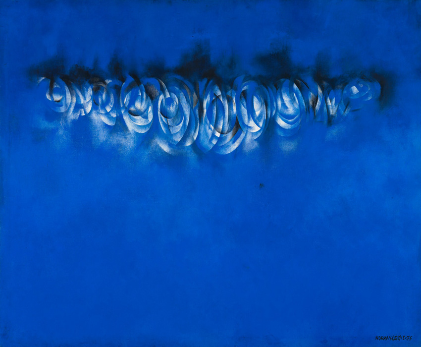 Block Island, a radiant blue composition of curvilinear forms, is the first work on canvas from Norman Lewis’s Seachange series to come to auction. Each oil on paper and canvas in the series is identifiable by undulating shapes surrounded by deep hues, drawing abstraction from the rhythms of nature. The works in the series date from 1975-77, though the artist began this series of works as early as 1968, and continued to explore it throughout the 1970s until his passing in 1979.