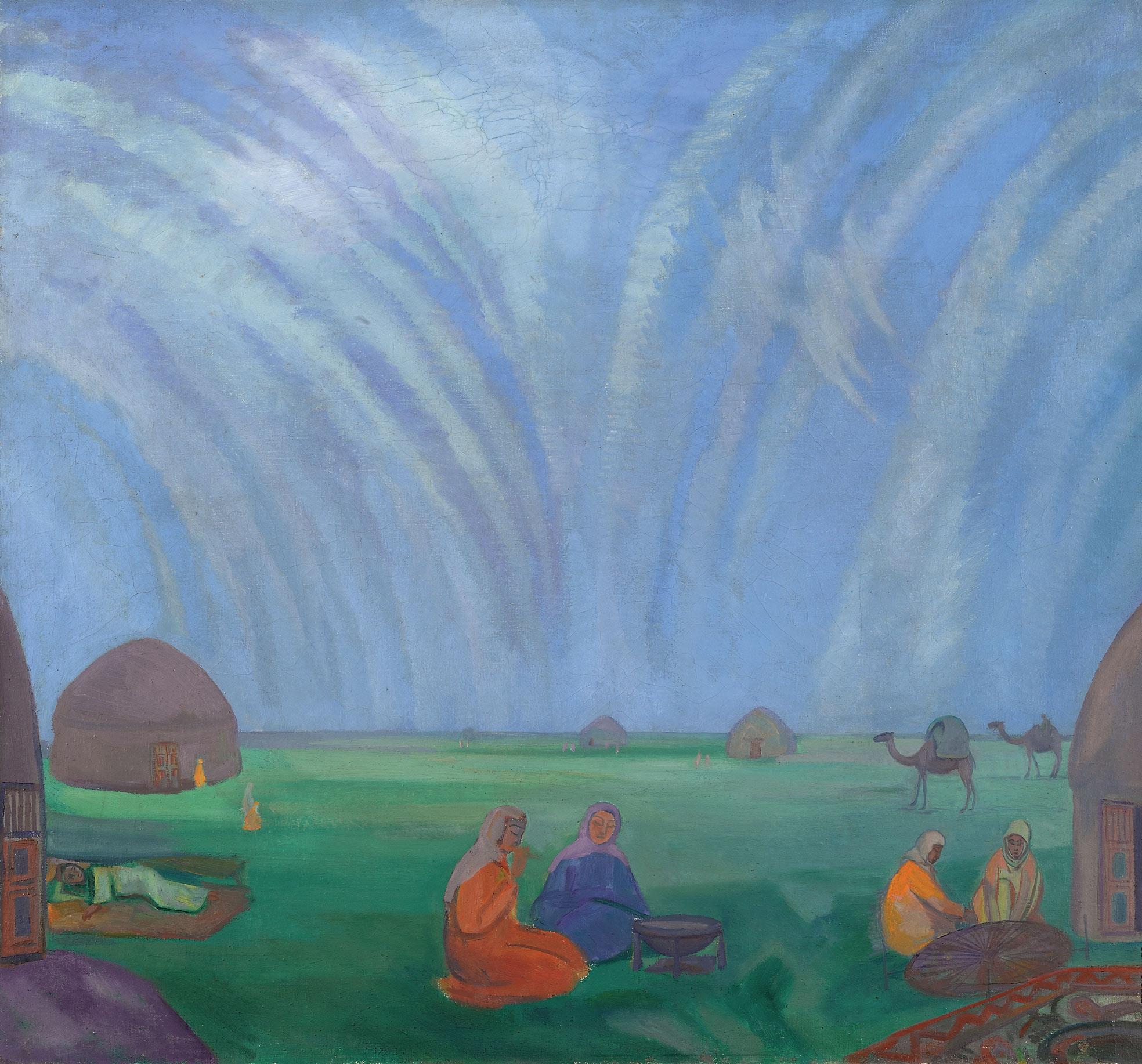 В годы революции Павел Кузнецов работал с огромным подъёмом. Он принимал участие в издании журнала «Путь освобождения», вёл педагогическую работу, заведовал секцией живописи в отделе ИЗО Наркомпроса. Ему удалось создать новые вариации восточных мотивов, где заметно влияние древнерусской живописи, он написал прекрасные портреты своей жены, художника-сценогрофа Елены Бебутовой, оформил литографские серии «Туркестан» и «Горная Бухара».