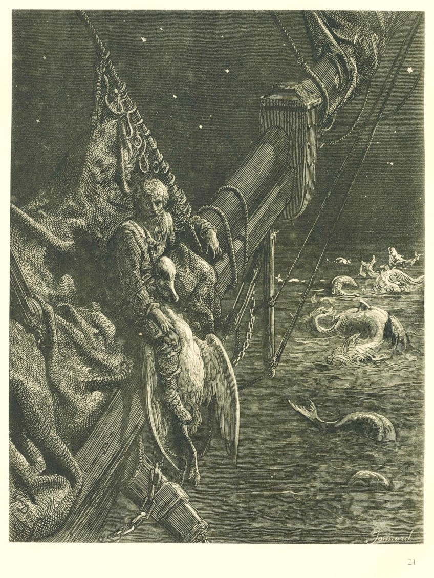 “… And in the shadow of the ship I saw great water snakes.” An illustration by Gustave Doré for The Rime of the Ancient Mariner (1866); Gustave Doré, Public domain, via Wikimedia Commons