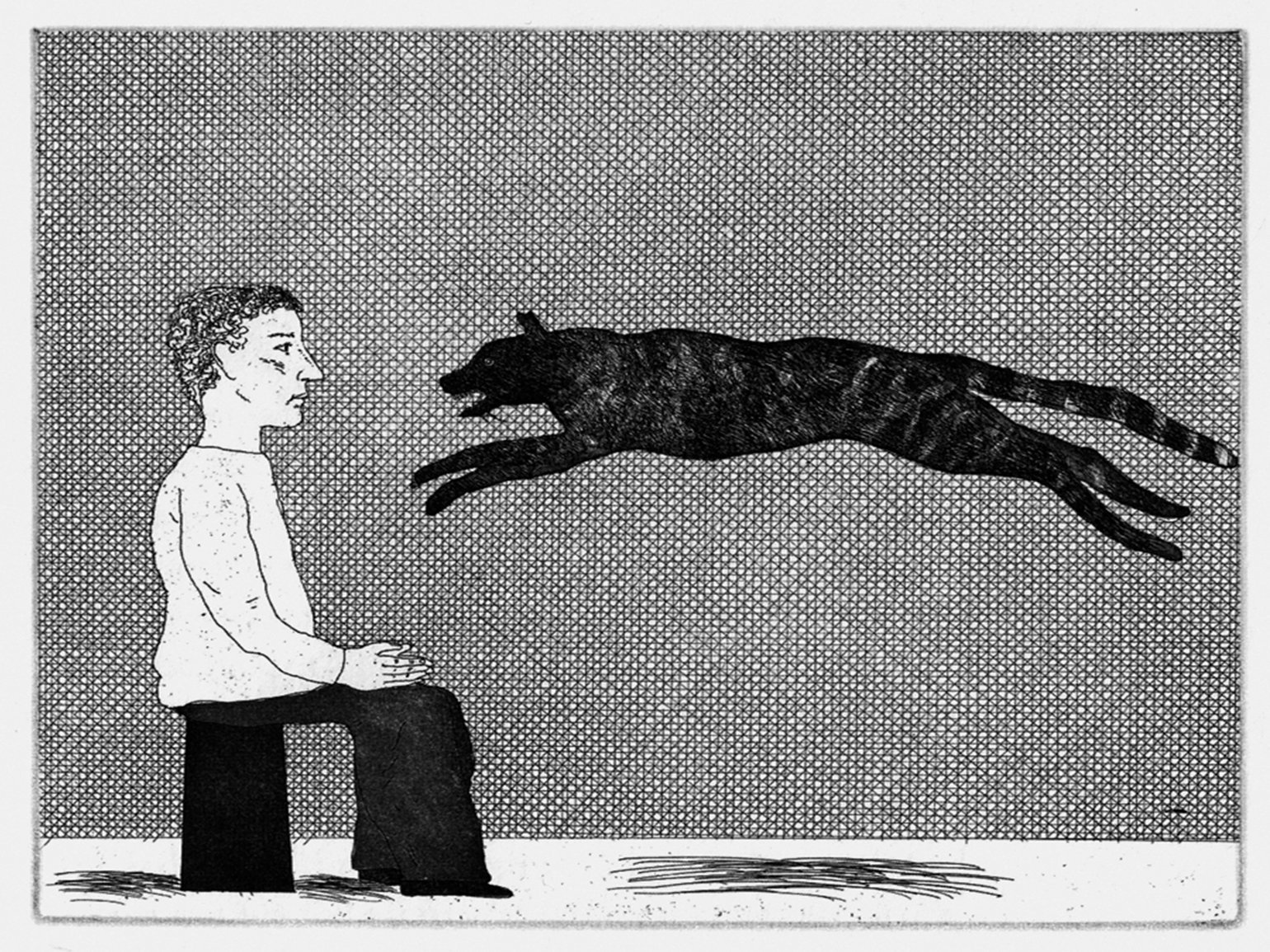 «Прыжок чёрной кошки». Иллюстрация: Дэвид Хокни / иллюстрация к сказкам Братьев Гримм