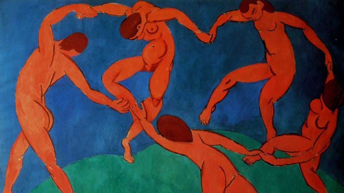 Огромная картина, занимающая почти всю стену, поражает. Неискушенному зрителю она может показаться слишком примитивной. Красные угловатые фигуры, взявшихся за руки, развёрнуты, изогнуты в стремительном танце, неподвластном привычной всем системе координат, течению времени, законам физики и логики. Издалека, кажется, что фигуры застыли. Но, нет! Они движутся! Они танцуют и танцевали ВСЕГДА! Есть только ТАНЕЦ, есть только ЖИЗНЬ в этих красных фигурах, есть только стремительный вихрь ТАНЦА в синем космическом пространстве. Сам Универсум стал для них танцевальным кругом, неистовой танцплощадкой.