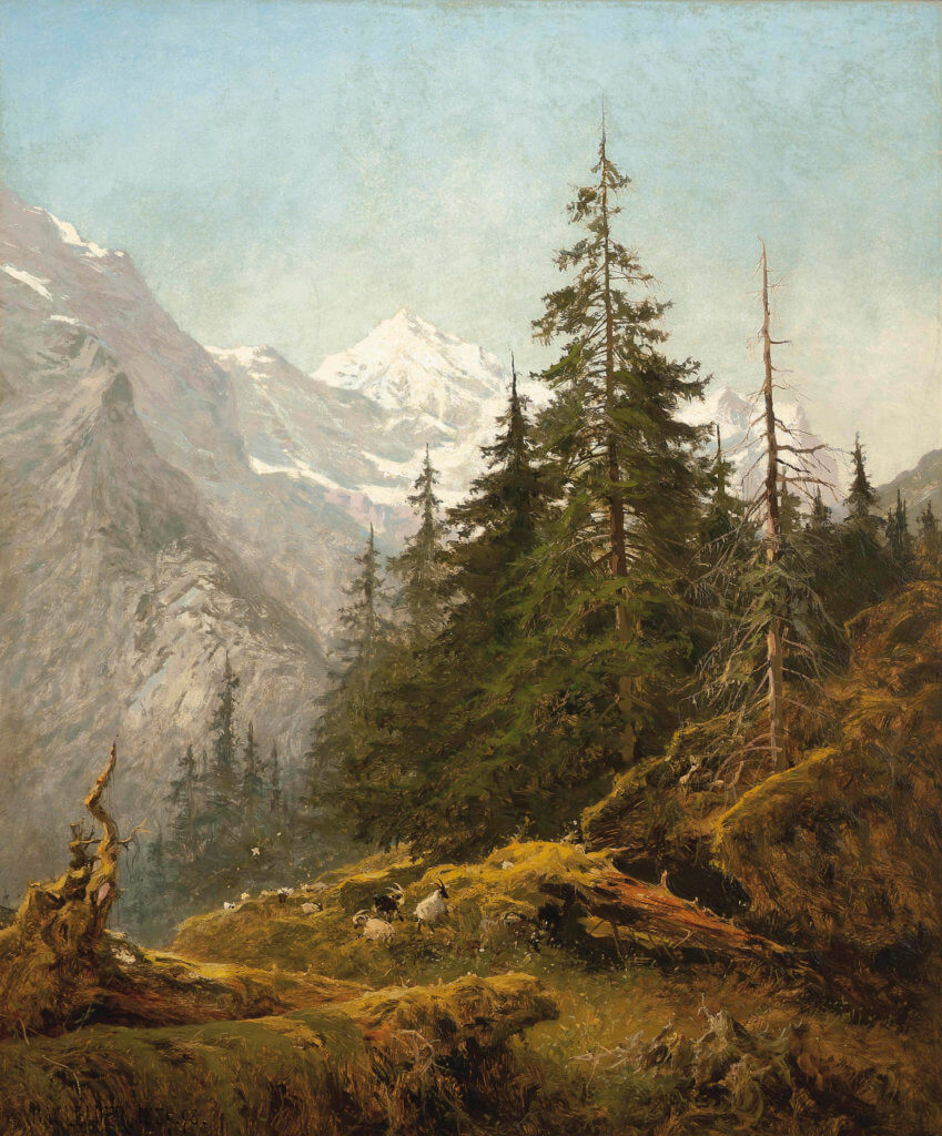 Картина Уильямса Бенджамина Лидера: 1 — «Вид на гору Веттерхорн»(1889-1898), 2 — «Лес в Суррее»(1901)