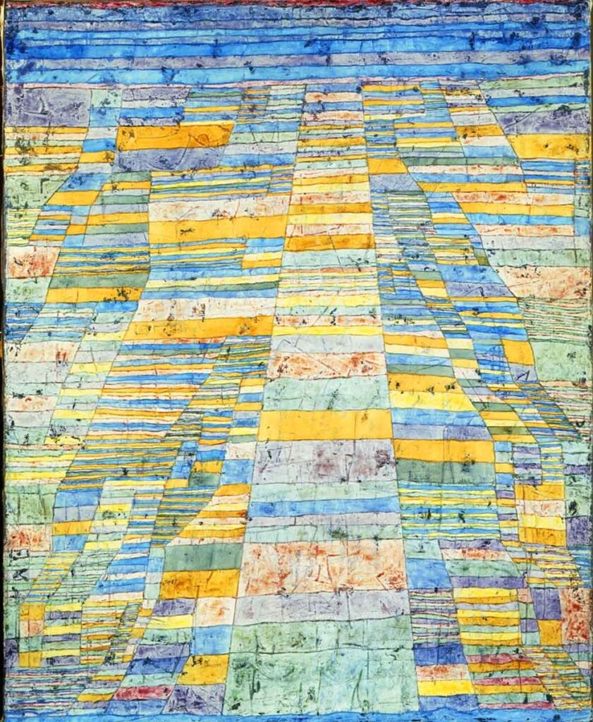 Highway and Byways is an oil painting on canvas. It belongs to the group of his many layered and striped paintings and was created in January 1929 after Klee’s second trip to Egypt