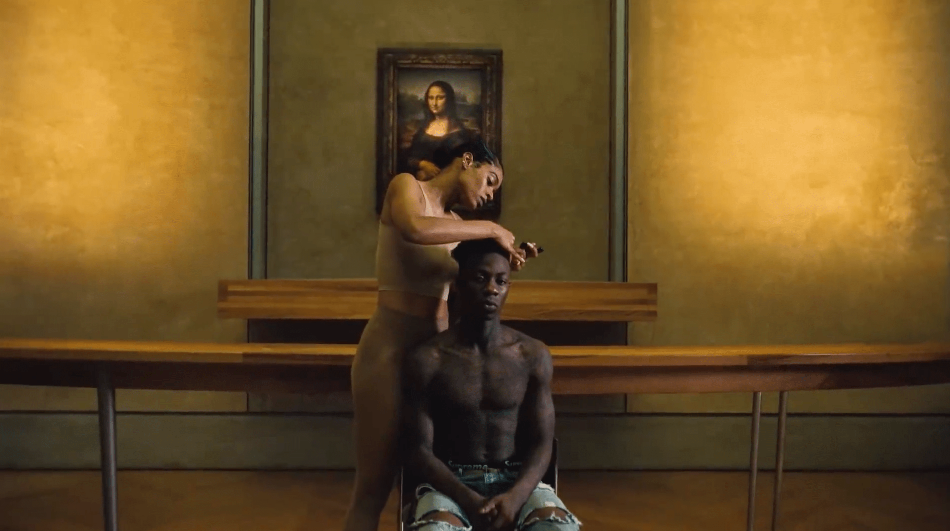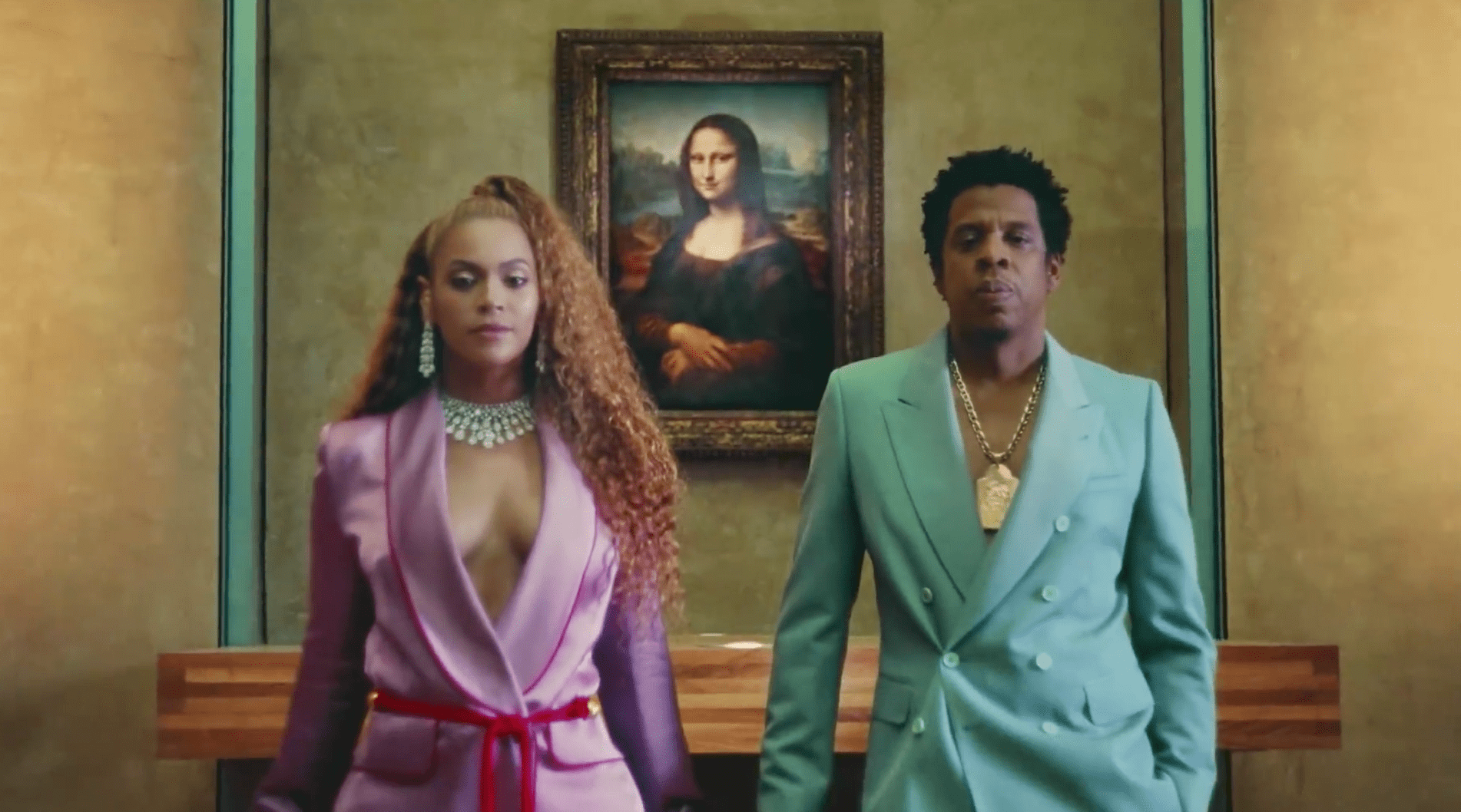 Still from APES**T, Leonardo da Vinci, Mona Lisa, 1503, Louvre, The Carters, 2018, Youtube.