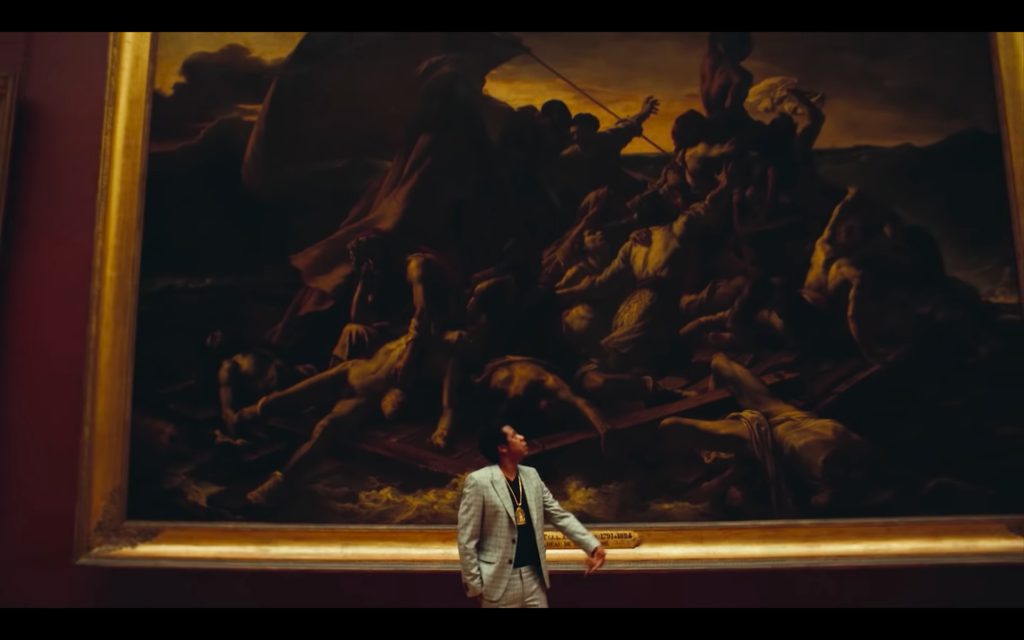 The Raft of the Medusa, another masterpiece in Jay-Z and Beyoncé Louvre video, depicts a moment from the aftermath of the wreck of the French ship Méduse, which ran aground off the coast of today’s Mauritania in 1816. Three days after the catastrophe at least 147 people were set adrift on a hurriedly constructed raft; all but 15 died in the 13 days before their rescue, and those who survived endured starvation and dehydration and practiced cannibalism. The story became an international scandal and the symbol of social inequalities – all of the lifeboats were used by the noblemen and rich, the poor had no chance to rescue themselves.