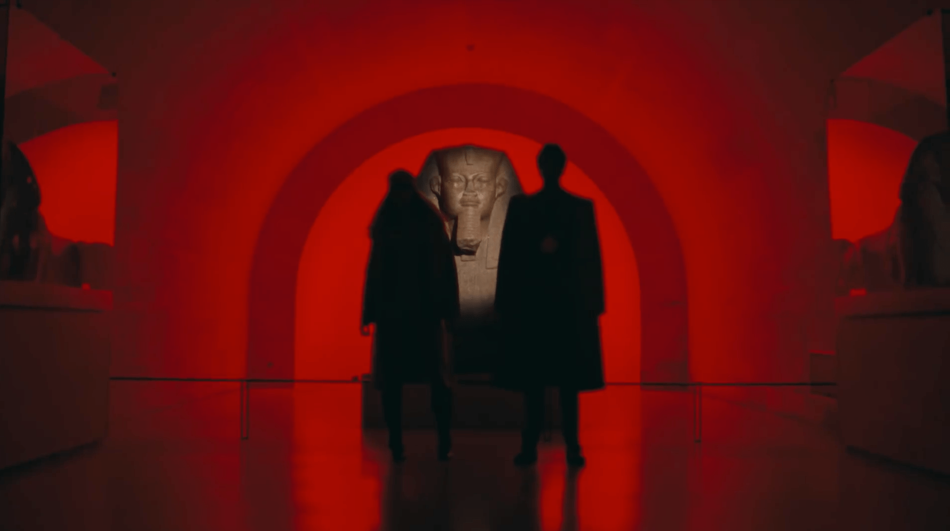 Still from APES**T, The Great Sphinx of Tanis, 2600 BCE, Louvre, The Carters, 2018, Youtube.The Great Sphinx of Tanis, 2600 BCE, Louvre, Paris, France. Photo by Oh Paris via Wikimedia Commons (CC BY-SA 2.0).