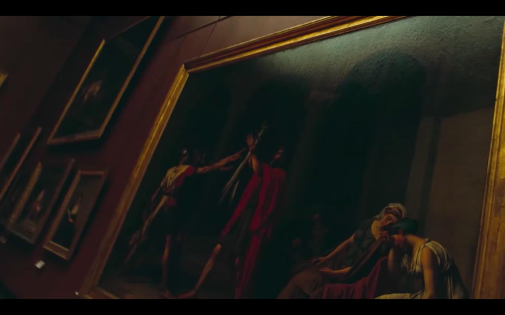 Still from APES**T, Jacques-Louis David, Oath of the Horatii, 1784, Louvre, The Carters, 2018, Youtube.