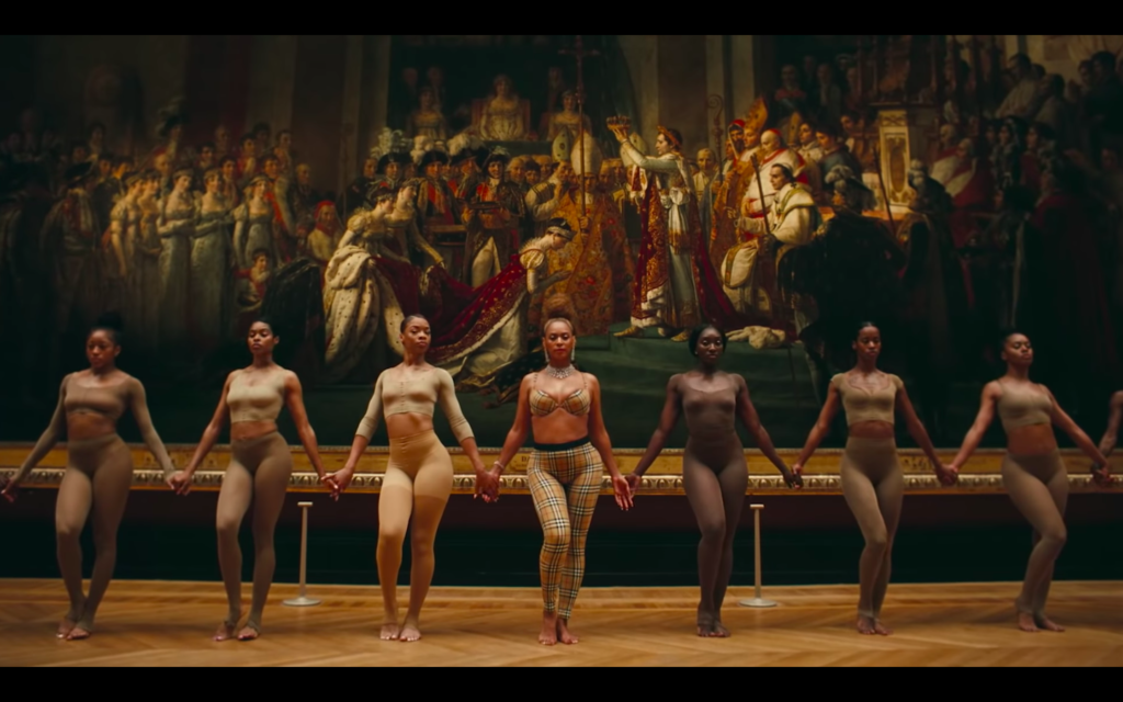 The parallels that Beyoncé draws here are far from subtle; by positioning her body directly under the kneeling figure of Joséphine being crowned by Napoleon (who had just crowned himself, as opposed to letting the church do it) it appears that Queen Bey is not looking to the establishment for confirmation of her greatness. Napoleon’s role as one of the world’s most notorious colonizers adds another dimension of complexity to this juxtaposition.