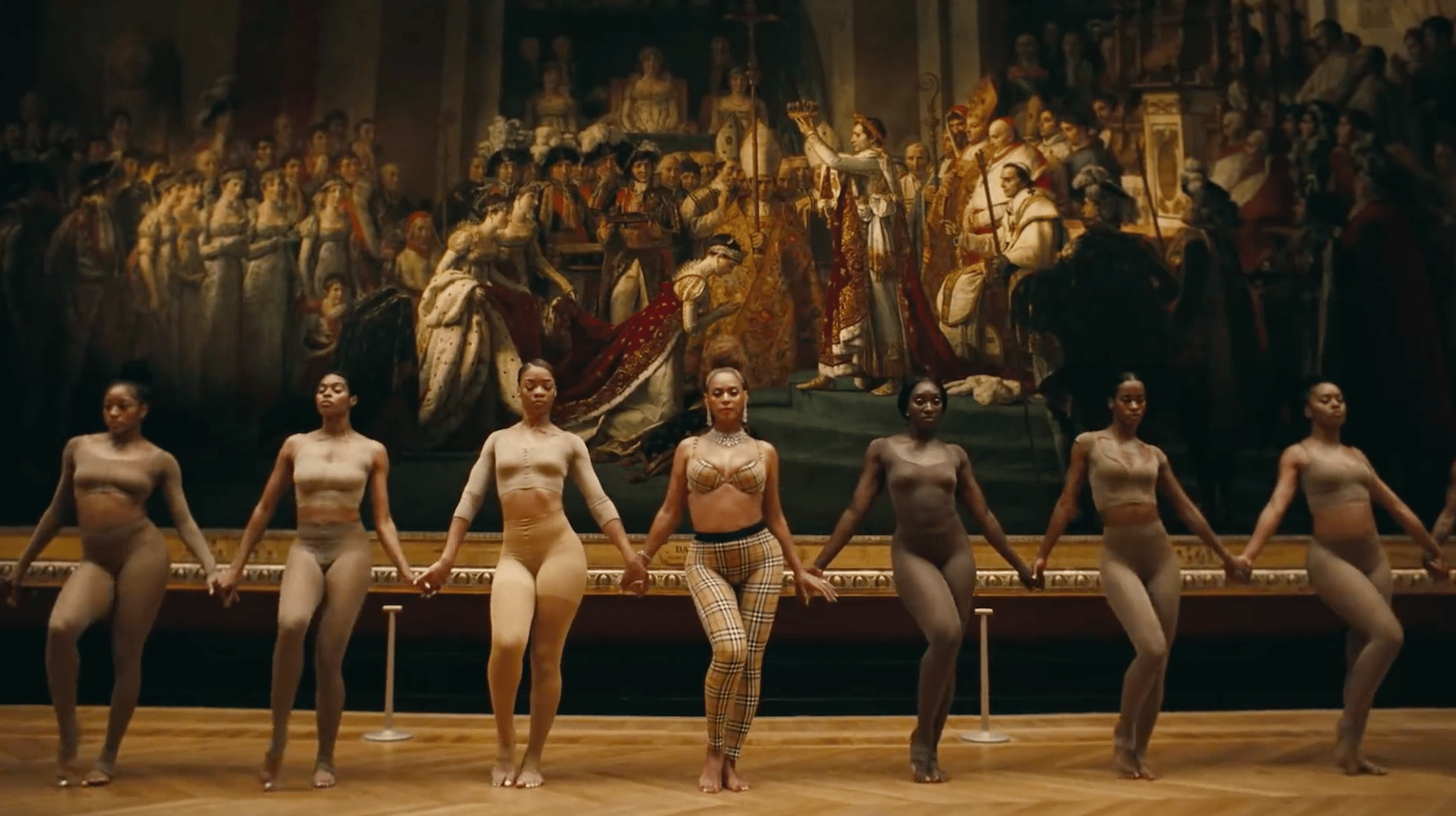 Still from APES**T, Jacques-Louis David, Coronation of Napoleon I, 1805-1807, Louvre, The Carters, 2018, Youtube.