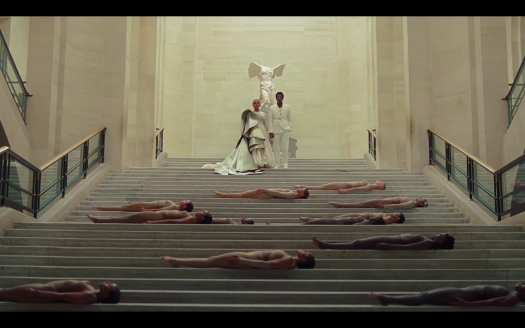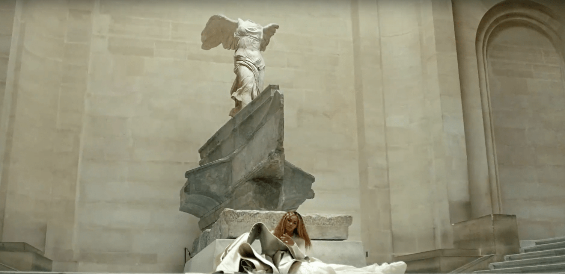 Still from APES**T, Winged Victory of Samothrace, 2nd century BCE, Louvre, The Carters, 2018, Youtube.