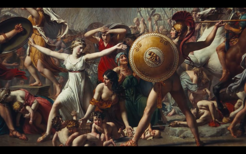 Still from APES**T, Jacques-Louis David, The Intervention of the Sabine Women, 1796-99, Louvre, The Carters, 2018, Youtube.