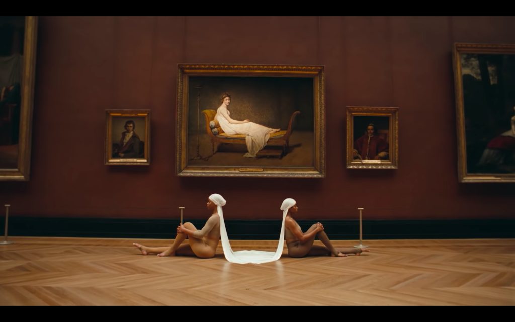 Still from APES**T, Jacques-Louis David, Portrait of Madame Récamier, 1800, Louvre, The Carters, 2018, Youtube.