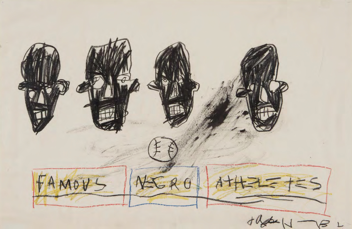 На своих полотнах Баския создал собственный «пантеон» из темнокожих богов и героев, которых можно отличить по коронам и нимбам. Среди тех, кого живописец включил в эту плеяду, были знаменитые афроамериканские боксеры, актеры и джазовые исполнители.