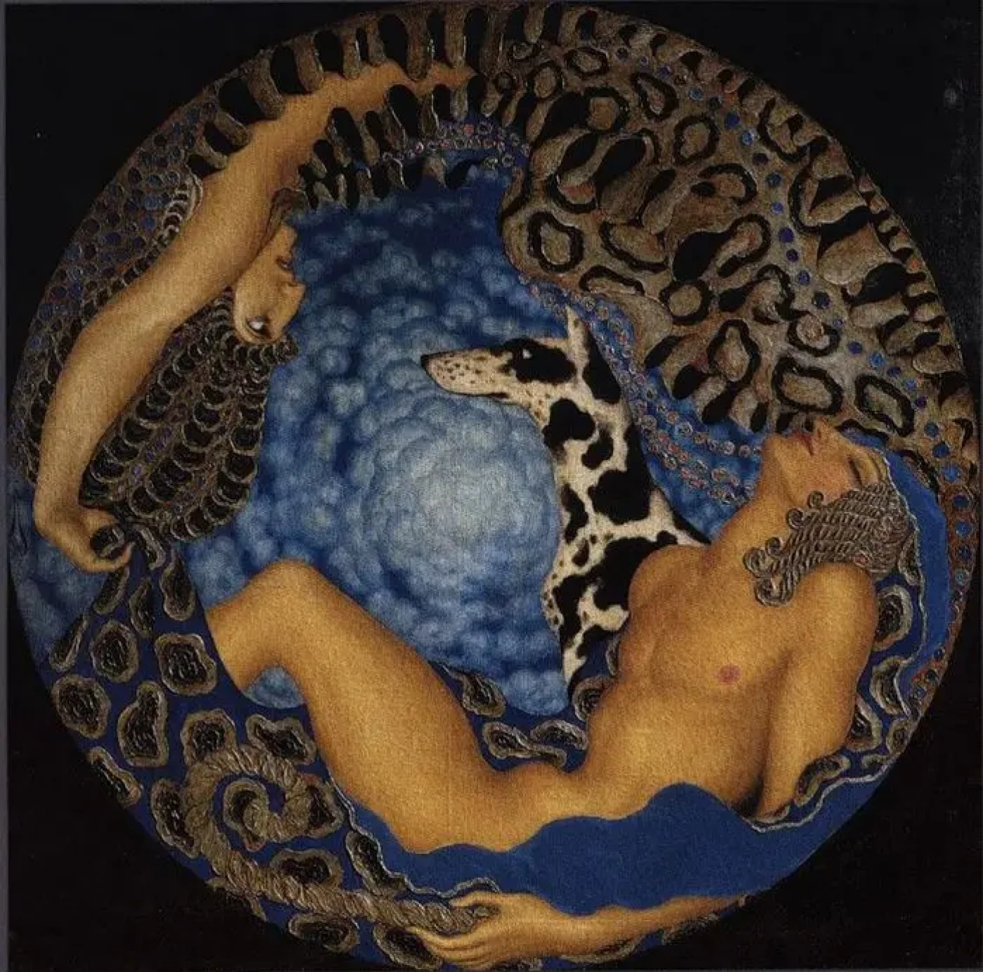 Калмаков нередко обращался к мифическим мотивам, этносу. «Артемида и спящий Эндимион» — работа, которая сочетает в себе черты неоклассицизма и модерна.Художник увековечил миф, по которому девственная богиня охоты Артемида была пленена красотой Эндимиона. Зевс погрузил его в вечный сон за любовь к своей жене — Гере.
